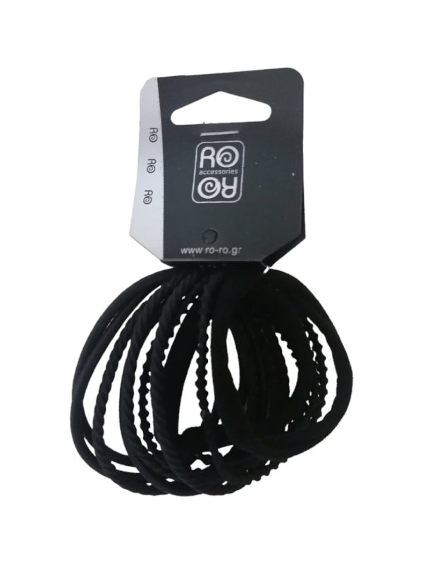 RoRo Λάστιχο Μαλλιών Μαύρο 4τμχ/σετ