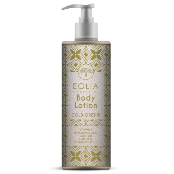 Η Eolia Gold Orchid Body Lotion προσφέρει ενυδάτωση με Υαλουρονικό, Αλόη & Ελαιόλαδο. Αρωματισμένη με νότες Χρυσής Ορχιδέας, για δέρμα απαλό & λαμπερό χωρίς λιπαρότητα.