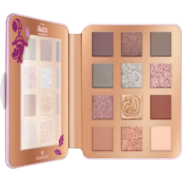 Μπες στον μαγικό κόσμο της φαντασίας με την Essence Alice in Wonderland Eyeshadow Palette 01 All Smiles Here. Μια παλέτα εμπνευσμένη από την αξέχαστη ιστορία της Αλίκης, που προσκαλεί σε παιχνιδιάρικα και ονειρικά μακιγιάζ. Συνδυάζει ψυχρές και ουδέτερες nude αποχρώσεις, εμπλουτισμένες με ρόδινα και ασημένια λαμπερά φινιρίσματα, προσφέροντας αμέτρητους συνδυασμούς για κάθε περίσταση. Το διαδραστικό της design κάνει την εμπειρία ακόμα πιο μαγική!