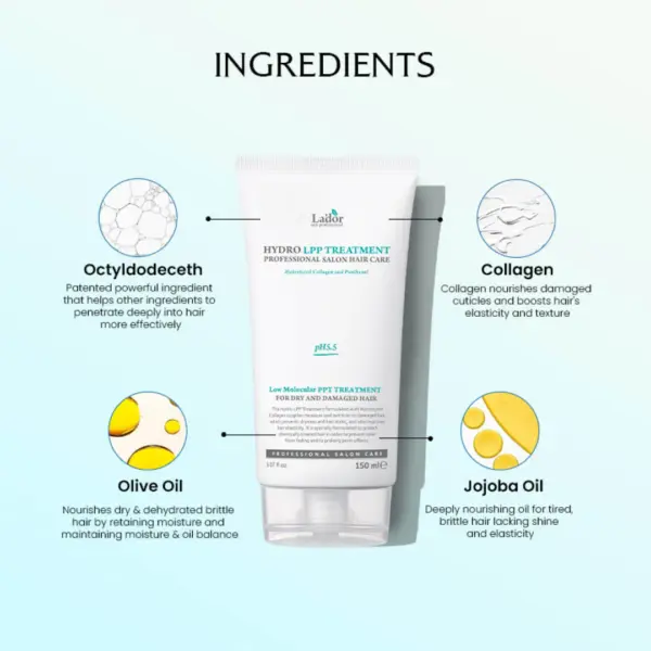 Η Lador Hydro LPP Treatment είναι μια επαγγελματική θεραπεία εντατικής ενυδάτωσης και αναδόμησης για ταλαιπωρημένα, βαμμένα ή ξηρά μαλλιά. Με την πρωτοποριακή σύνθεση χαμηλού pH και τα ενυδατικά της συστατικά, επαναφέρει την υγεία και τη λάμψη της τρίχας, χαρίζοντας απαλή και λεία υφή.