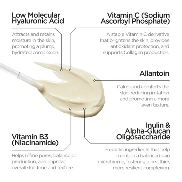 Με Βιταμίνη C για αντιοξειδωτική προστασία, προβιοτικά για ισορροπία και Υαλουρονικό Οξύ για ενυδάτωση, χαρίζει λεία, γεμάτη και λαμπερή επιδερμίδα.