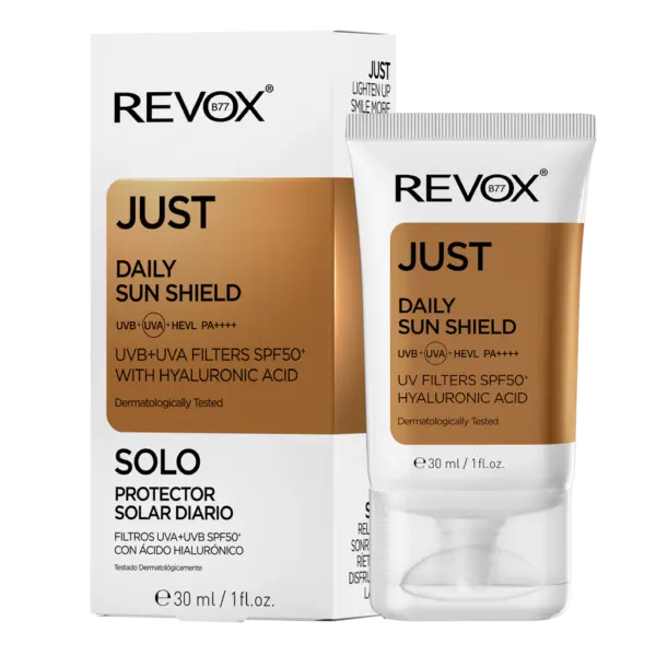 Το REVOX B77 JUST Daily Sun Shield SPF50+ συνδυάζει ευρέος φάσματος αντηλιακή προστασία με ενυδατική δράση, προστατεύοντας την επιδερμίδα από UVA, UVB και μπλε φως.