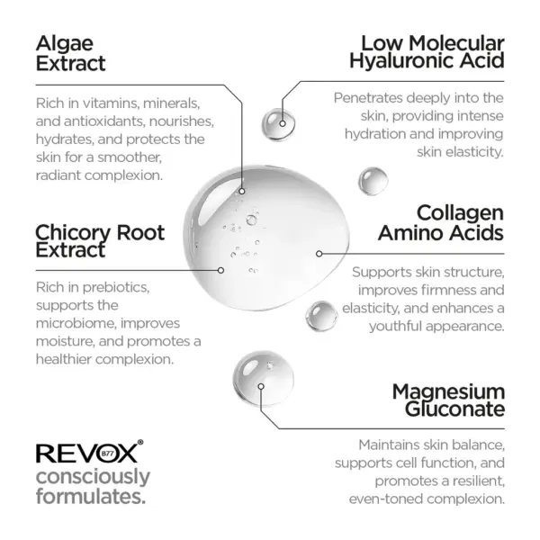 Το Revox Just Marine Collagen +HA Algae Solution είναι ένας ενισχυμένος ορός με θαλάσσιο κολλαγόνο, υαλουρονικό οξύ και εκχύλισμα φυκιών, σχεδιασμένος να ενυδατώνει, να συσφίγγει και να βελτιώνει την ελαστικότητα του δέρματος.