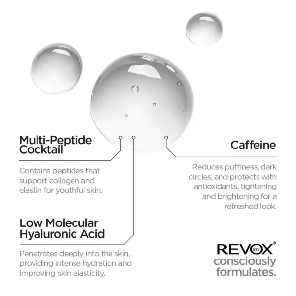Το Revox Just Multi-Peptide Eye Contour Serum είναι ένας προηγμένος ορός ματιών που στοχεύει στις ρυτίδες, τους μαύρους κύκλους και τα σημάδια κόπωσης. Η ισχυρή του φόρμουλα με πολλαπλά πεπτίδιαενισχύει τη φυσική ελαστικότητα του δέρματος και προσφέρει πιο νεανική, φωτεινή όψη στην περιοχή γύρω από τα μάτια.